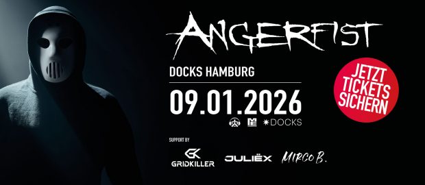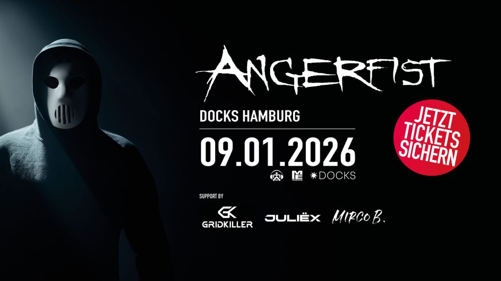Am 09. Januar 2026 bebt das Docks in Hamburg: Angerfist, die Ikone des Hardcore, kehrt zurück und bringt die volle Wucht seiner kompromisslosen Sounds mit. Unterstützt wird er dabei von GridKiller, Juliex und Mirco B – ein Line-up, das die Nacht in puren Ausnahmezustand versetzt. Macht euch bereit für gnadenlose Energie, hämmernde Kicks und eine Show, die ihr so schnell nicht vergessen werdet.