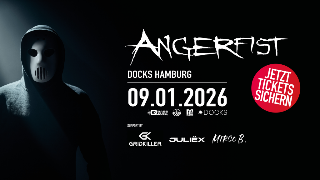 Am 09. Januar 2026 bebt das Docks in Hamburg: Angerfist, die Ikone des Hardcore, kehrt zurück und bringt die volle Wucht seiner kompromisslosen Sounds mit. Unterstützt wird er dabei von GridKillerJuliex und Mirco B – ein Line-up, das die Nacht in puren Ausnahmezustand versetzt. Macht euch bereit für gnadenlose Energie, hämmernde Kicks und eine Show, die ihr so schnell nicht vergessen werdet.