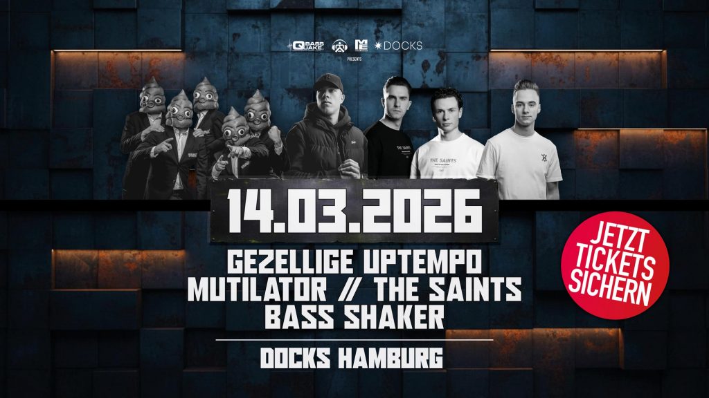 Am 14. März 2026 trifft im Docks brachiale Energie auf kompromisslose Geschwindigkeit – wenn zwei der aktuell gefragtesten Acts der Szene die Bühne übernehmen: The Saints und Gezellige Uptempo.